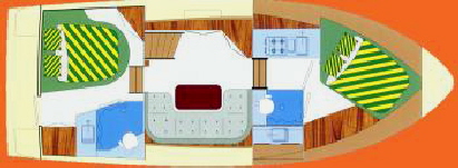 4 +1, Vorder- und Achterkajüte gleichwertig mit großen Doppelbetten, Aufbettung durch Umbau im Salon